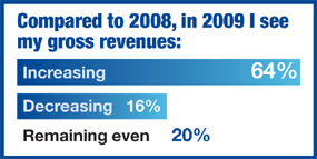 When asked to predict their financial performance for 2009, 64% of respondents said they expect gross revenue growth in 2009.