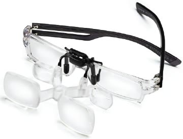 Also, the patient can flip the lenses out of the way via its hinged clip mechanism when they're not needed.