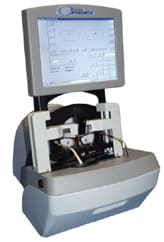 ◄ Super Systems Optical Technologies' Fast Grind 2200 System surfacing device is now available with AR capability. It features a three-pad process that produces fine and polish prescription multifocal and single-vision lenses (ranging from +6.00D to -9.00D in up to a 3.00D cylinder) using tap water alone, in less than 12 minutes, the company says. The device doesn't use resins, slurries or chemicals. Visit www.superoptical.com. |