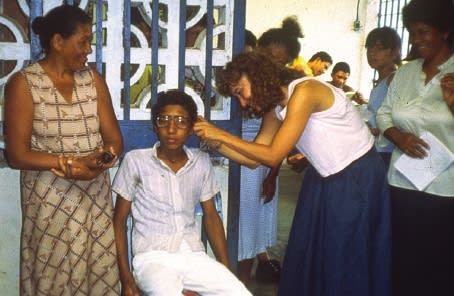 In Venezuela, Dr. Cole recalls a mother who feared her 12-month-old daughter was blind in both eyes. Previously, the child had cataract surgery but not intraocular lens implantation. "One of the volunteers found a pair of eyeglasses designed for an adult cataract patient and reduced the size to fit the child's face," Dr. Cole says. "When he placed the eyeglasses on the child, immediately she looked at her hand and her mother's face. She discovered she could see."