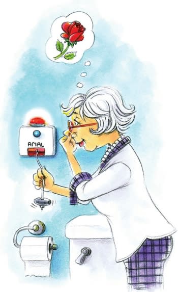 As it turned out, pulling the cord set off an alarm in the retirement community's central office, and very shortly a man rushed to the house to discover what the emergency was. The Baldwins explained what had happened, but did not want to embarrass WHN, so did not tell her what she had done. The next day she decided the air again needed freshening, so again pulled the cord. A man again rushed from the central office of the community to answer the emergency call. This time Honey and Bill figured, the heck with embarrassment, they needed to tell her to please stop the cord pulling.