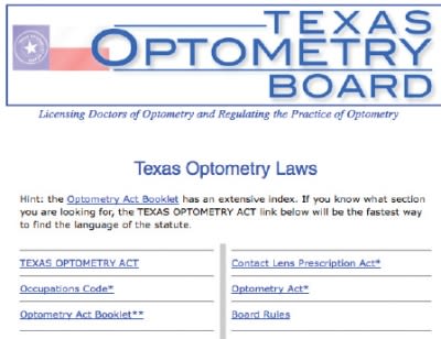 Under the Texas Optometry Act, it's illegal for manufacturers, wholesalers and retailers of ophthalmic goods to control, or attempt to control, the professional judgment, manner of practice or practice of an O.D. or therapeutic O.D. who leases space from these entities and practices optometry or therapeutic optometry on their premises. (For a full list of violations, see Section 351.408 of the Texas Optometry Act at www.tob.state.tx.us/TOBCode.htm.) For each day of violation, the Act provides for a civil penalty of up to $1,000 in addition to court costs and attorney's fees.