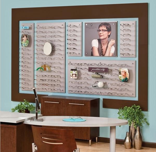 ■ The Omni display system, from Fashion Optical Displays, consists of a variety of slender panels in assorted sizes that range from seven to 45 frame capacities. In addition, the system includes a wide selection of interchangeable graphic and signage holders, mirrors and display shelves. You can arrange the panels in a "multitude of configurations" to fit any wall, and they are ideal for both high-traffic areas or dispensaries that have limited space, the company says.