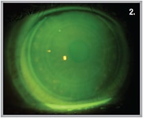 3. Note the improvement in corneal staining after three weeks of scleral lens wear.