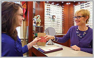 After presenting the gift certificate, we ask, “would you like to try on a few frames today?” Then, we offer to take them to the frame boards to help them choose their sunwear.