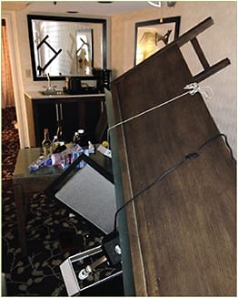 Embassy Suites Napa Valley Hotel room after the earthquake.