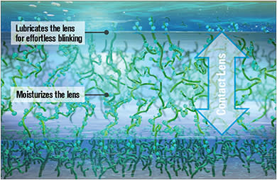 Like naturally occurring tear film mucins, the PVP in the lenses contains sites that interact with all key tear components.