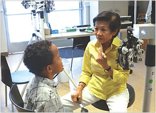 CAPTION: In September, VSP Global celebrated 60 years by hosting its largest multi-city mobile eye care clinic in the company’s history. The clinic included free eye exams and eye wear for 1,637 people in need. In the photo, Dr. Phenny Kwan, a frequent mobile eye care clinic volunteer, examines a young patient in Sacramento, Calif. ■