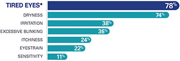 Monica Brown, OD: I like to ask the question, “Do you like, love or hate your current contacts?” If the answer is “like,” then I know I’ve got some room to improve to turn that into a “love.” One of the insights leading into this study was that patients often use different language than we do to describe symptoms. For example, the term “tired eyes” is commonly used to describe what we as clinicians would call dryness (Figure 2). Recognizing and addressing that complaint — and linking its cause to patients’ eye physiology or lifestyle — is one way to turn the wearing experience around.