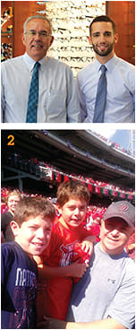 1: Dr. Geller at work. 2: Dr. Glazier with sons at a baseball game.