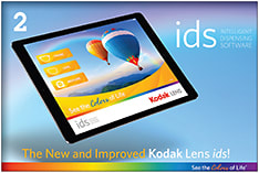 Kodak Lens ids, from Signet Amorlite Inc., is Kodak lens intelligent dispensing software. It contains patient education and is broken down into “Frames,” “Lens” and “Measure,” sections, according to the company. ■