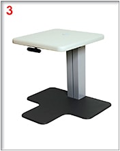AIT-W1, pictured, and AIT-W2, from Topcon Medical Systems, are adjustable instrument tables, which also allow for wheelchair accessibility. The two models differ in shape ■