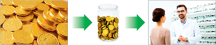Hand each team member his or her coins. Show the jar or stapled-shut bag. Educate that you want team members to listen to each other talk to consumers to see whether “transactional” words, such as those described above vs. “buying” words, such as “vision care discount plan,” “benefit” and “savings,” are used. If the former words are overheard, a team member must gently remind the offender to give up one of his or her coins to the jar or bag. (This is all shared in the spirit of good faith and is not meant to be mean-spirited.)
