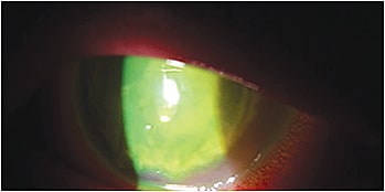 IN JUNE, a 14-year-old Asian female contact lens-wearer presented complaining of red eyes, blurred vision, pain, excessive tearing, swelling of her eyes and photophobia. She said she was diagnosed with a corneal ulcer/infection, had been dealing with these symptoms for two weeks and was looking for a second opinion. Upon questioning, the patient reported sleeping in her ortho-k contact lenses and relatively good contact lens hygiene. She also said she was an avid swimmer.