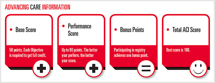 Advancing Care Information: In this area, participate in six base score categories by listing your numerator and denominator values.