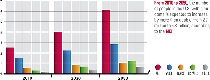 Projections for Glaucoma in 2010-2030-2050 (in millions)