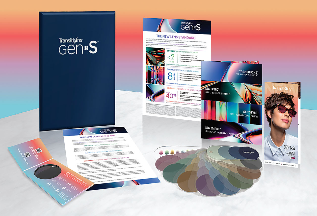The Gen S lens starter kit, from Transitions Optical, equips professionals with tools and resources to help showcase, ex-perience, and educate patients about these new lenses. Eye care professionals interested in the Transitions Gen S starter kit can visit TransitionsPRO.com/GENS (one per practice) to place their order, while supplies last, according to a press release.