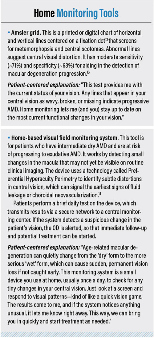 Each diagnostic technology provides unique insights into the structural and physiologic status of the retina, enabling early detection, accurate staging, and the ongoing monitoring of AMD progression and/or treatment response. Equally important is the ability of clinicians (and/or allied health staff—alter patient explanations as needed) to explain these tools in clear, relatable terms that empower patients to participate actively in their care. By combining clinical precision with empathetic education, ODs can improve patient adherence, detect changes sooner, and ultimately preserve vision and quality of life for patients. OM